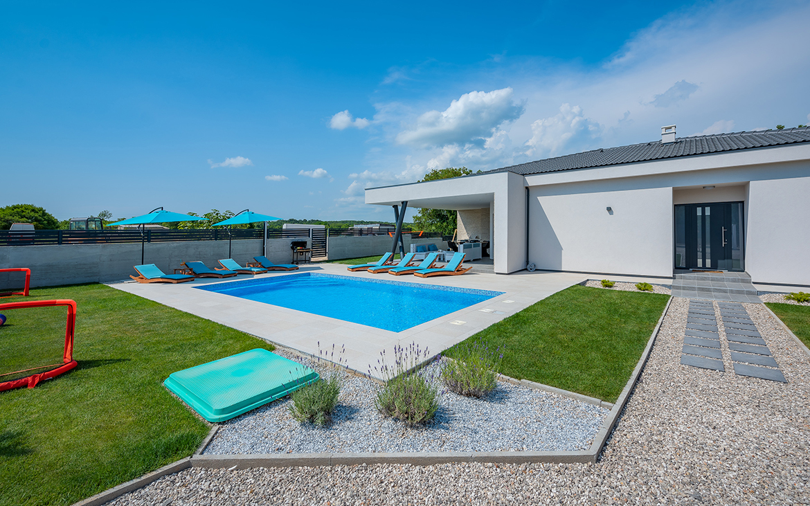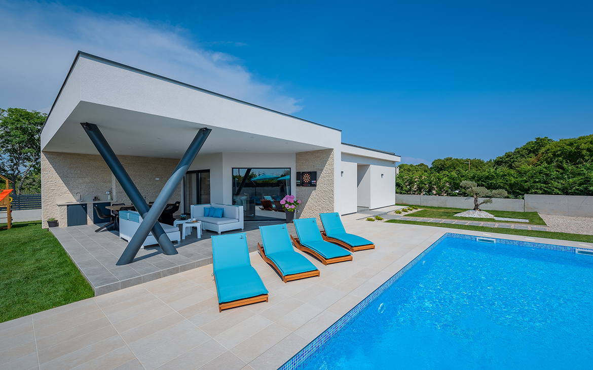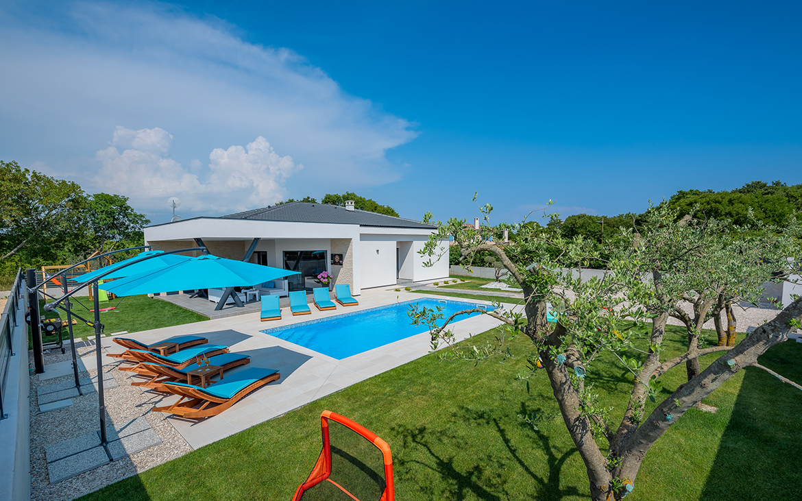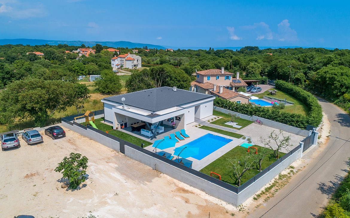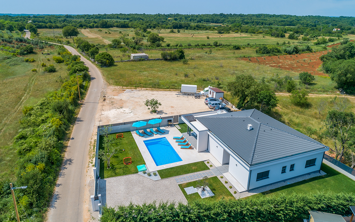 Villa Valin is a modern one-storey holiday villa, perfectly suitable for up to 9 persons. It is located only 2 km from the sea and is close to Pula, as well.