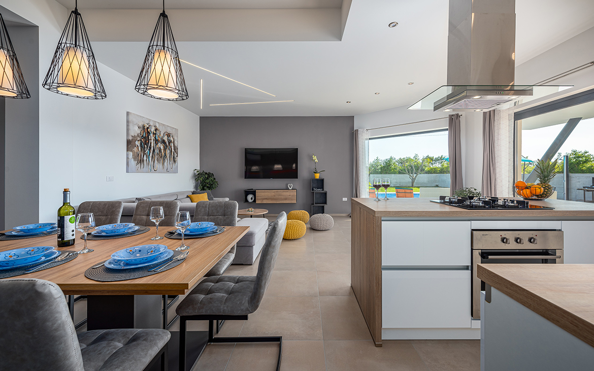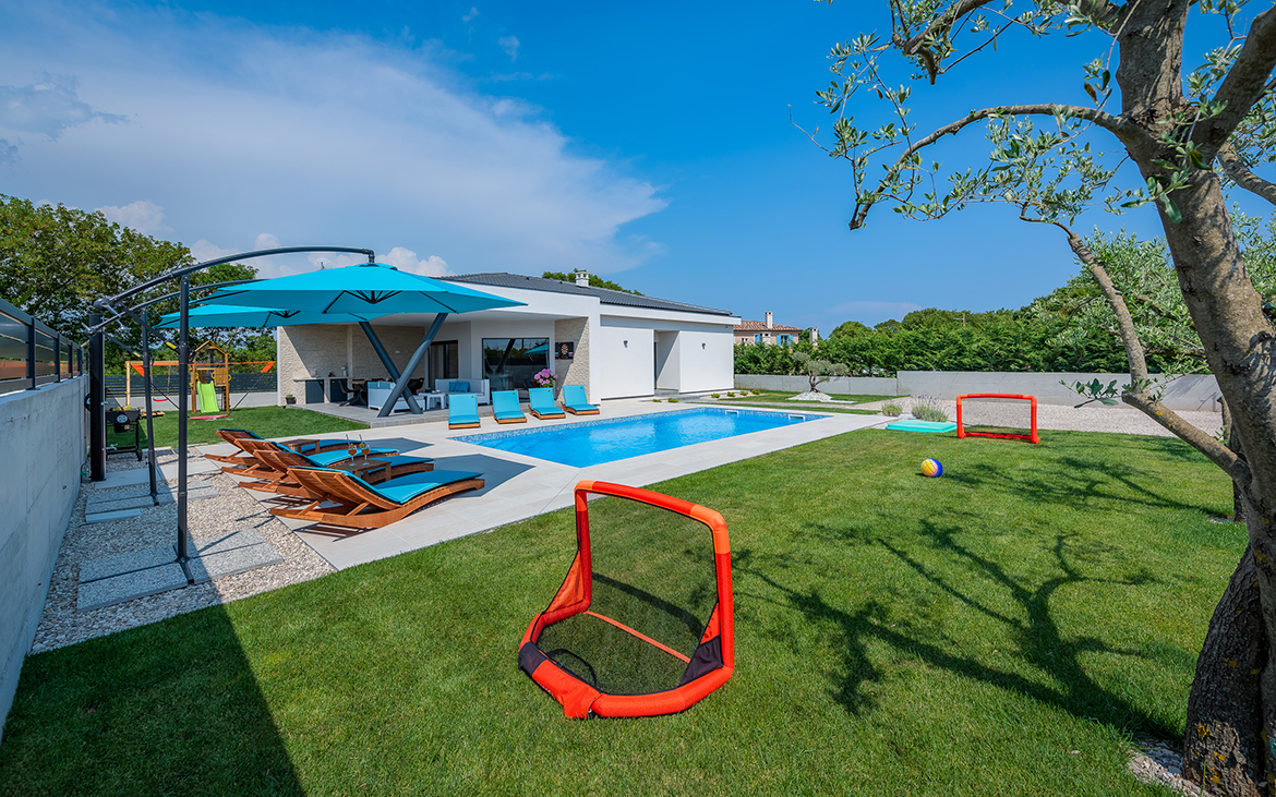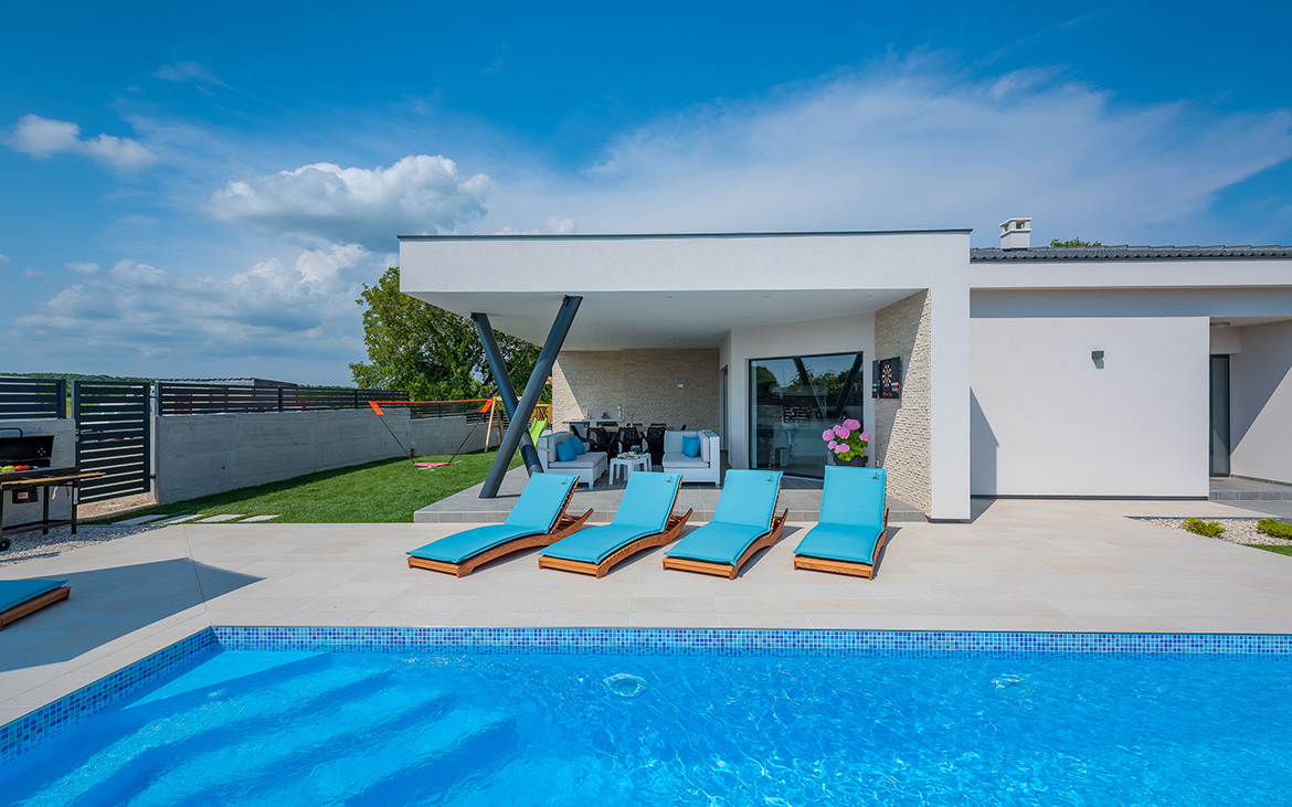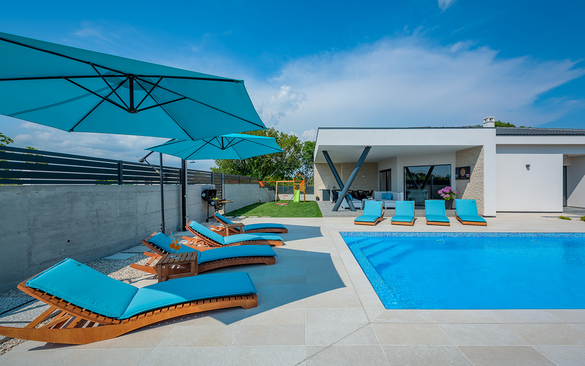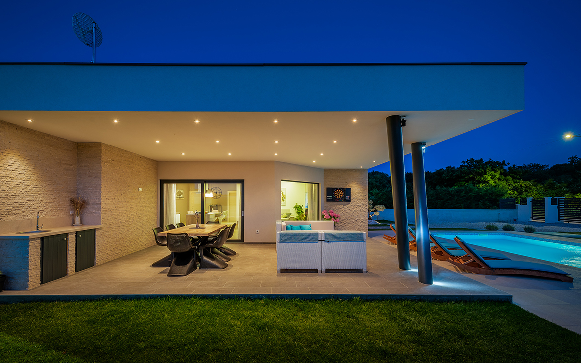 Villa Valin is a modern one-storey holiday villa, perfectly suitable for up to 9 persons. It is located only 2 km from the sea and is close to Pula, as well.