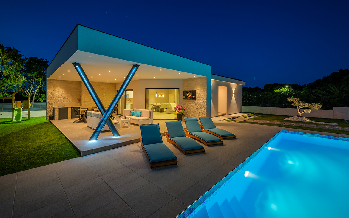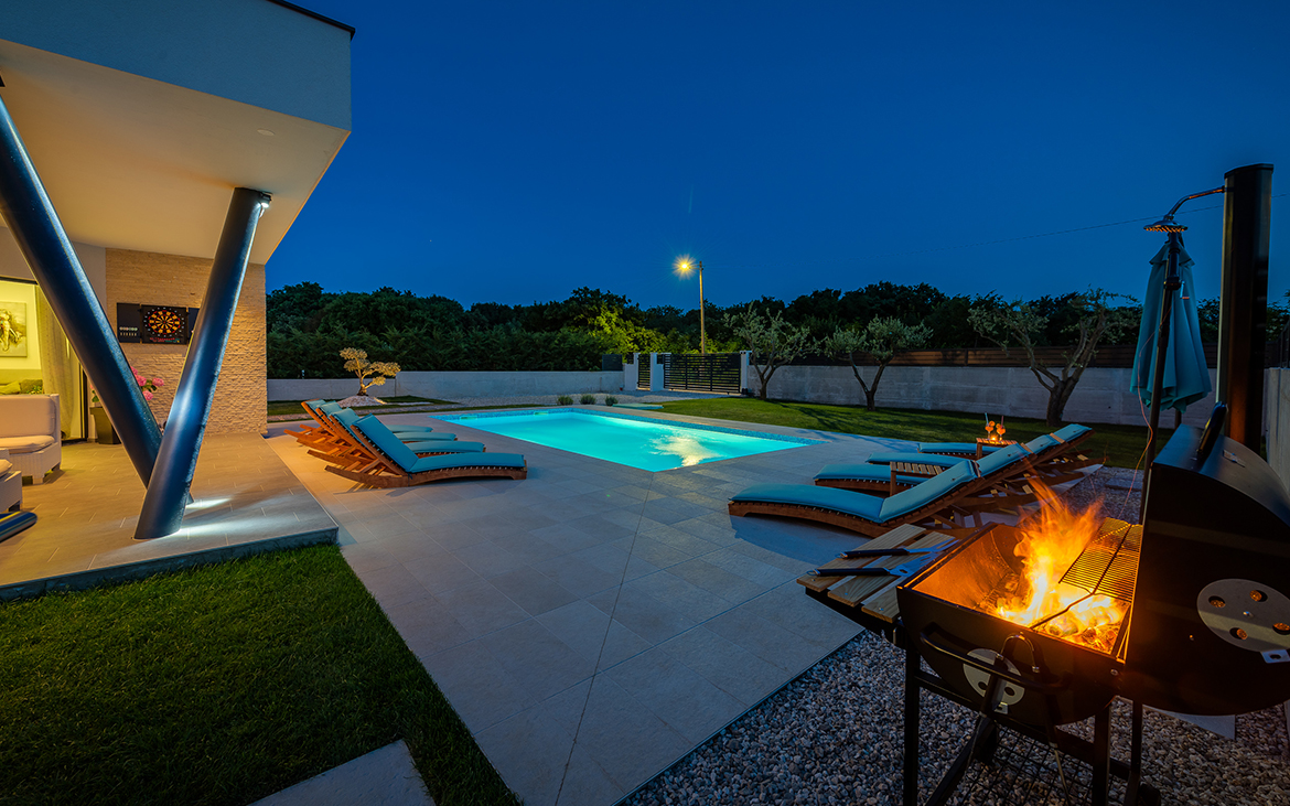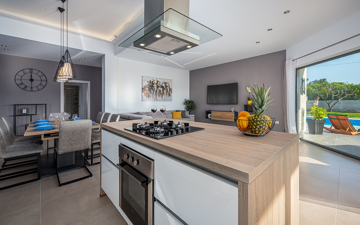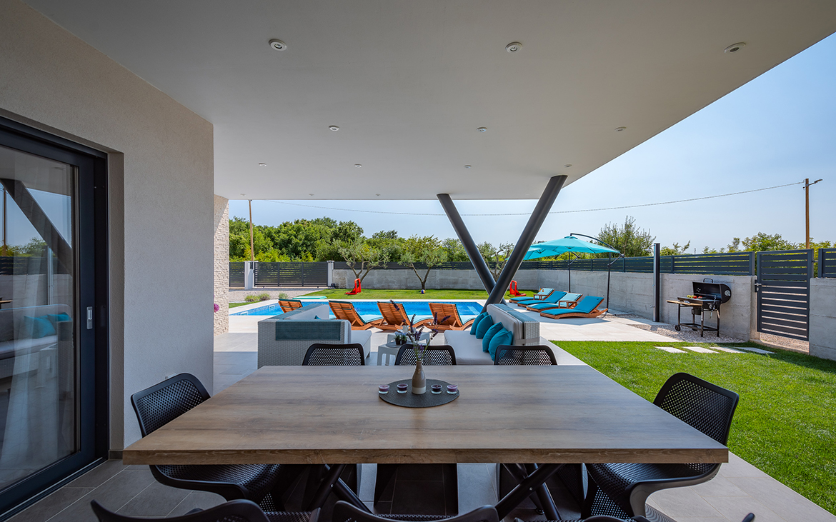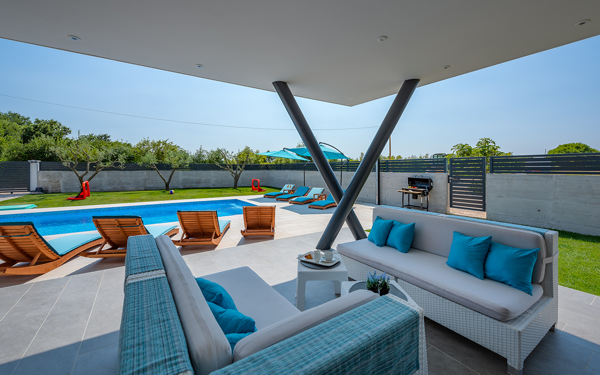 Villa Valin is a modern one-storey holiday villa, perfectly suitable for up to 9 persons. It is located only 2 km from the sea and is close to Pula, as well.
